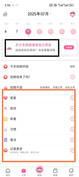 3、随后就可以查看本次专属报告,除了记录这些以外还能记录其他症状