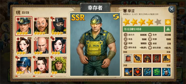 新手选择幸存者优先选取星级较高的,不需要一味的追求ssr。游戏特色是一星解锁两个技能,两星解锁四个技能,三星可以觉醒。