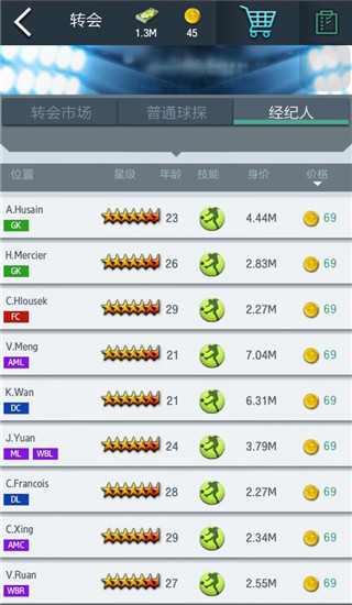 如果说球探搜索到的球员是种子球员后期有培养的天赋,那么经纪人签约来的球员就是夺目的球星。拥有强大的个人能力以及独有的技能,他们可能是我们足球帝国里的梅西或C罗。但好的球员肯定需要付出不小的成本,金币+正常签约费对一般玩家来说还是很高的。