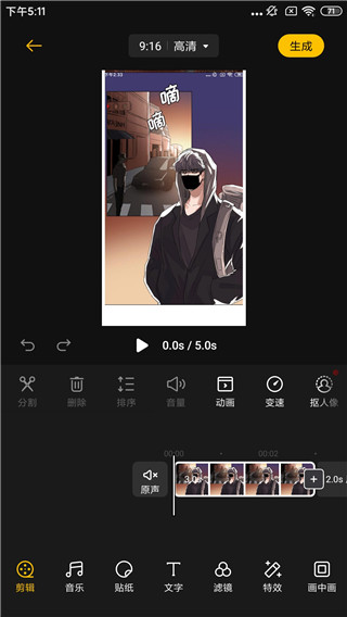 再选择你喜欢的滤镜,在相应的片段加上字幕,点击“√”就会在相应的片段显示出来咯,然后再给整个视频配上一段音乐,点击【生成】即可。