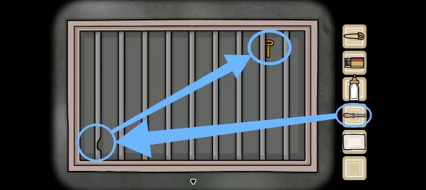 2、回到放箱子的地方,去看排水管,用锉刀将断裂的水管取下来,获得断裂的水管和钥匙