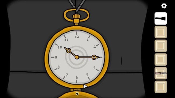 4、根据符号打开怀表获得时间「10:15」,再转身调整站台的时钟,新的火车出现后先拿走检票员胸口的「硬币」,再回来用钥匙打开售票站,接着用铁杆戳醒售票员将硬币交给她换取「车票」,最后上车检票进入下一站。注:检票时先打开检票器,再滑动车票。