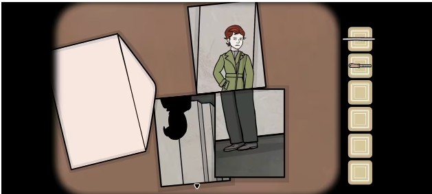 2、和劳拉玩完捉迷藏拿走手里的「玻璃板」,再点击左侧的海报,根据从小到大的提示依次点击画报场景里的物品(如上图)获得「钥匙」。