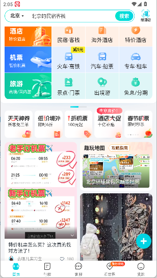 全程服务:涵盖酒店预定、机票购买、火车票比对以及旅行社精选等旅行综合服务。