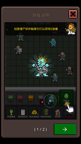 1、通过点击僵尸卵来制作僵尸,收集数据帮助僵尸不断进化。
