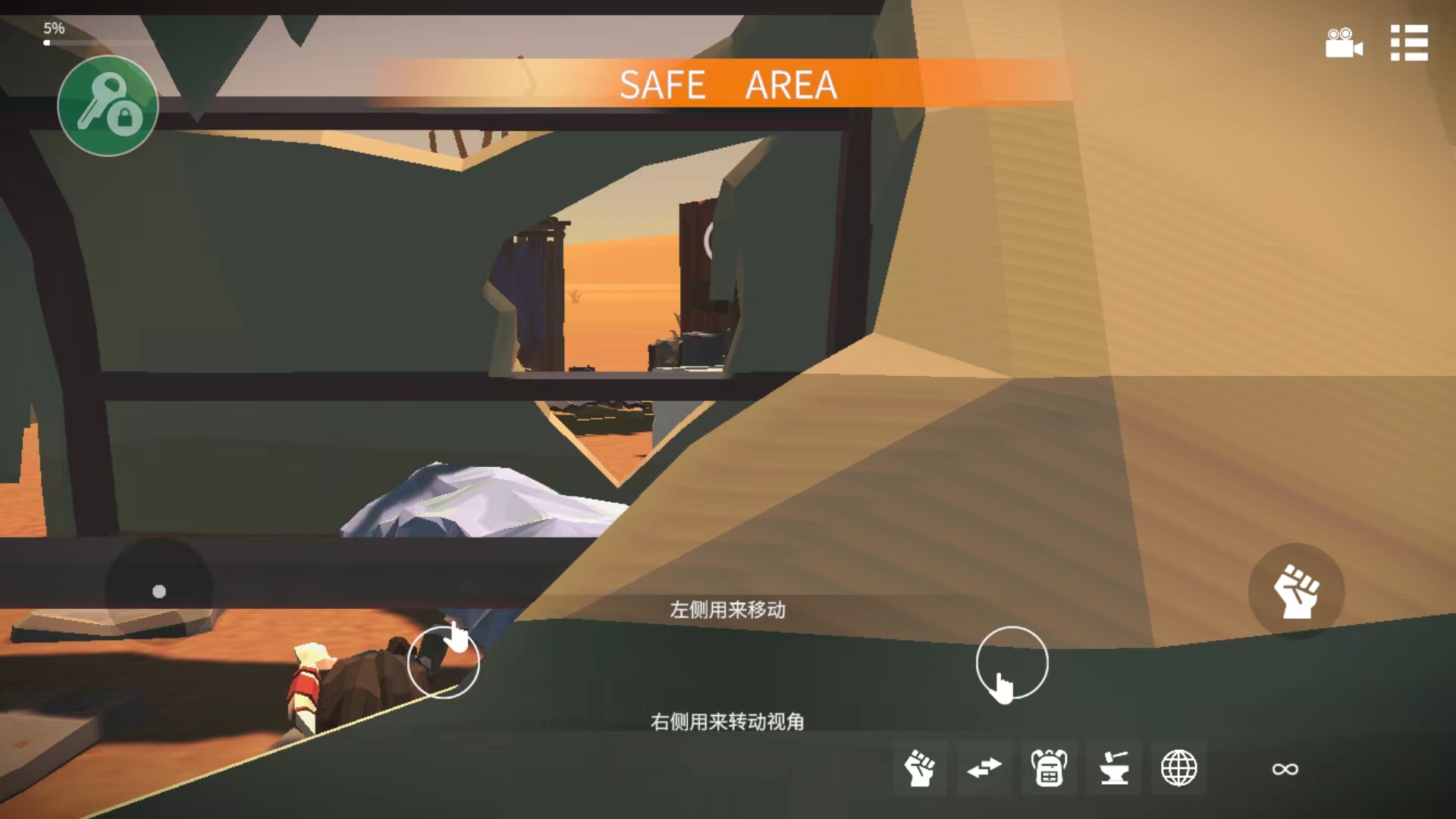 4、我们可以通过左方的按钮控制角色移动,右边来转动视角,