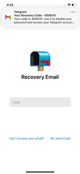 此时邮箱将收到一个telegraph验证码,输入该验证码继续。