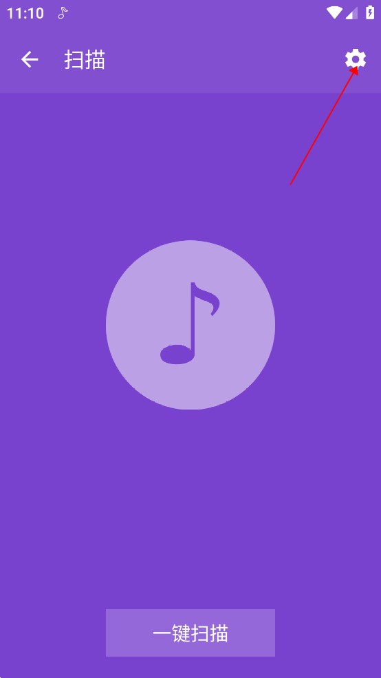 3、来到扫描页面,点击一键扫描按钮,该app就会自动扫描你手机内的本地音乐文件,也可以点击右上角的“设置”按钮;