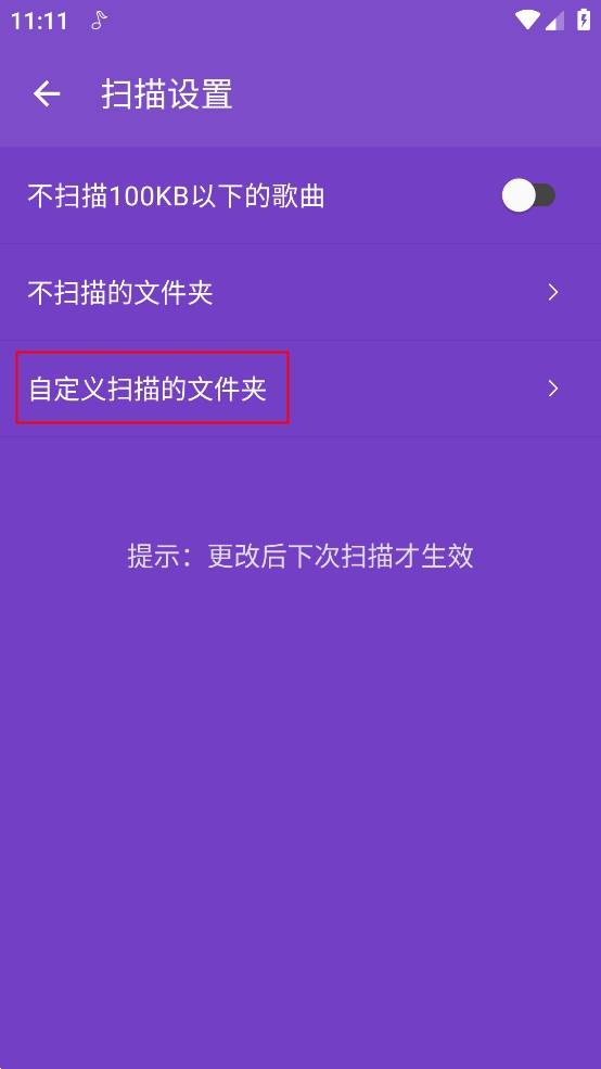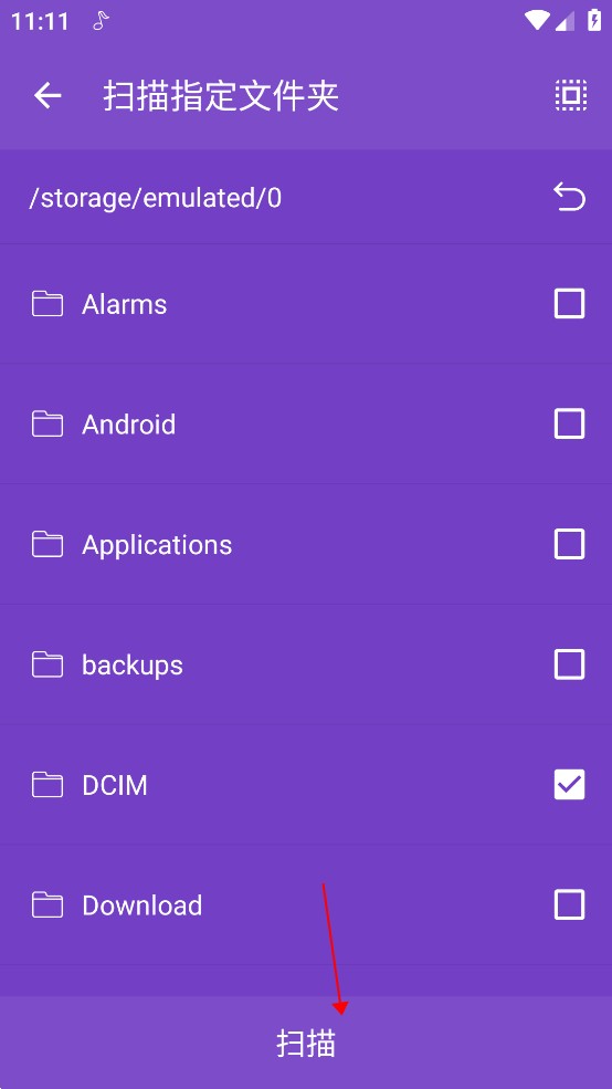 5、选择带有音乐的文件夹,点击“扫描”按钮,扫描完成后,该文件夹内的音乐就会导入到该app内了。