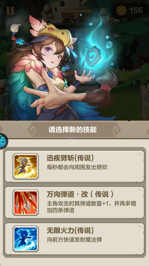 3、每完成一关,系统会提供多种技能选择,玩家可根据自身喜好与战斗节奏自由搭配,打造独特流派。