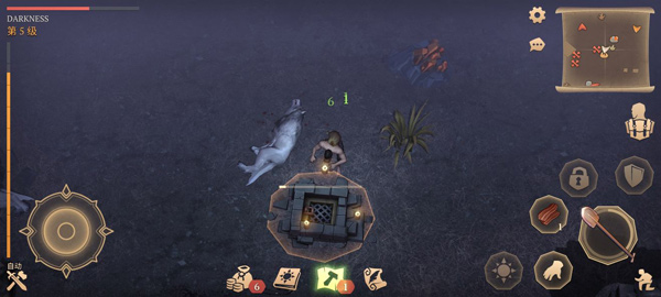 4、高度自由探索玩法,寻找更多资源,制作防身工具,时刻提防外敌,你还需要建造安全基地,白天外出狩猎、收集,晚上基地休息补充能力