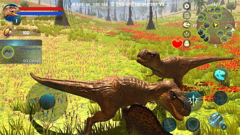 通过食用恐龙和饮用水来维持您的健康和精力,探索广阔的世界,与其他恐龙作斗争以变得更强大
