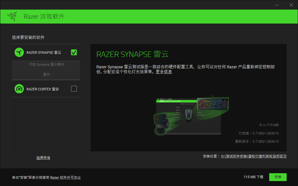连接后,Razer Synapse会自动识别到鼠标,并开始加载必要的配置文件。