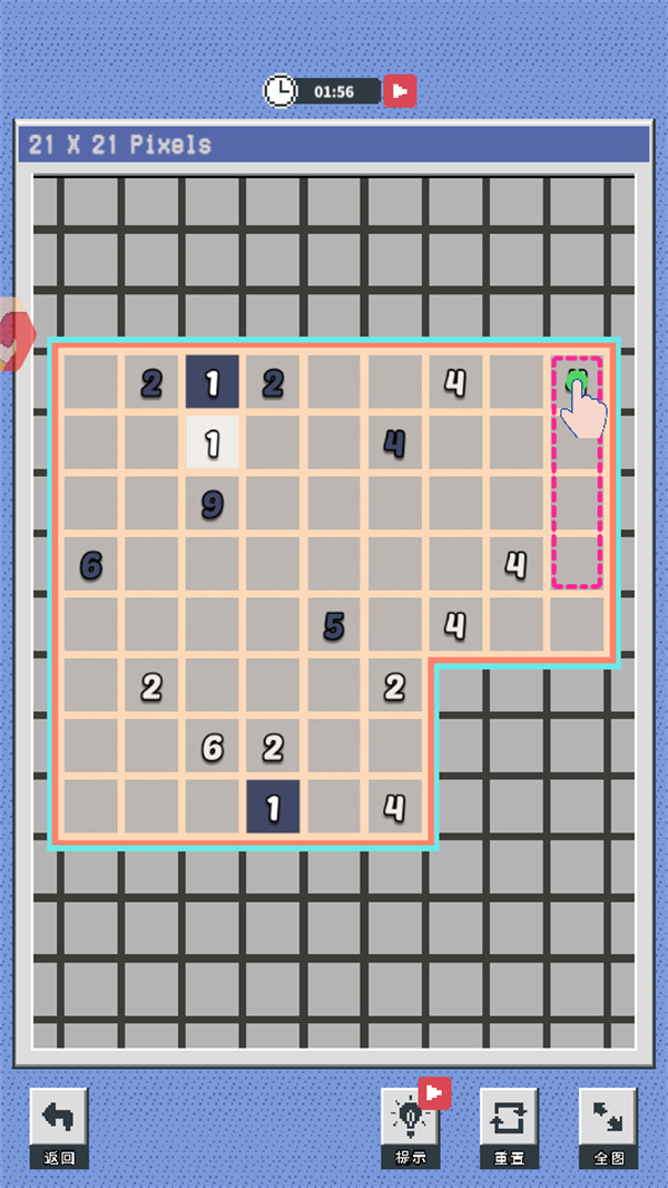 像素修复者游戏玩法十分简单,有一些格子会带有数字
