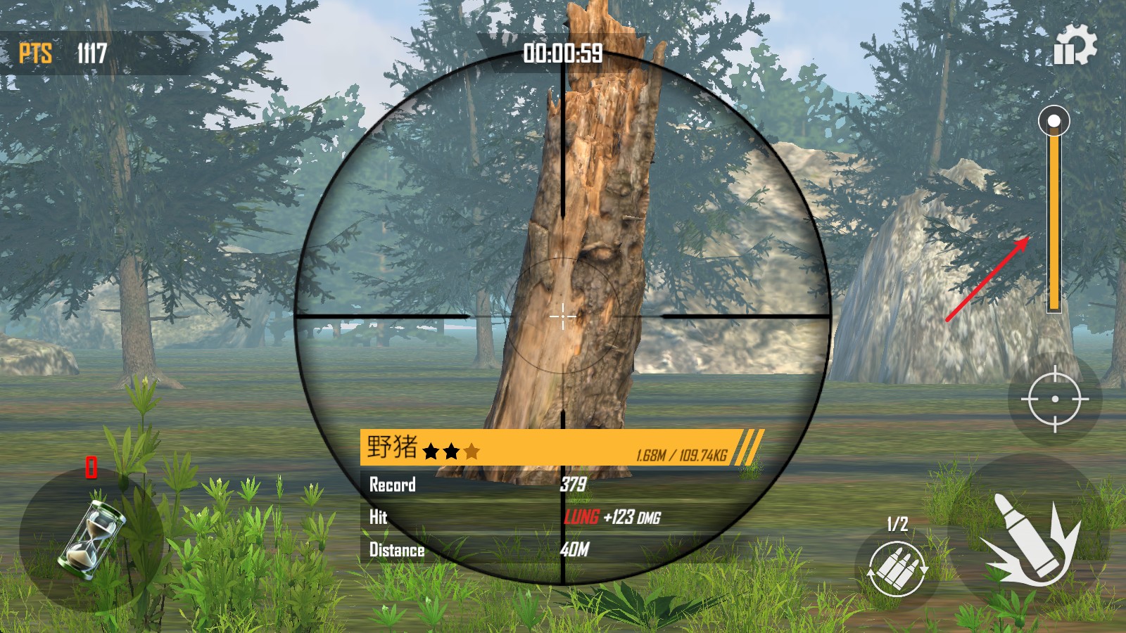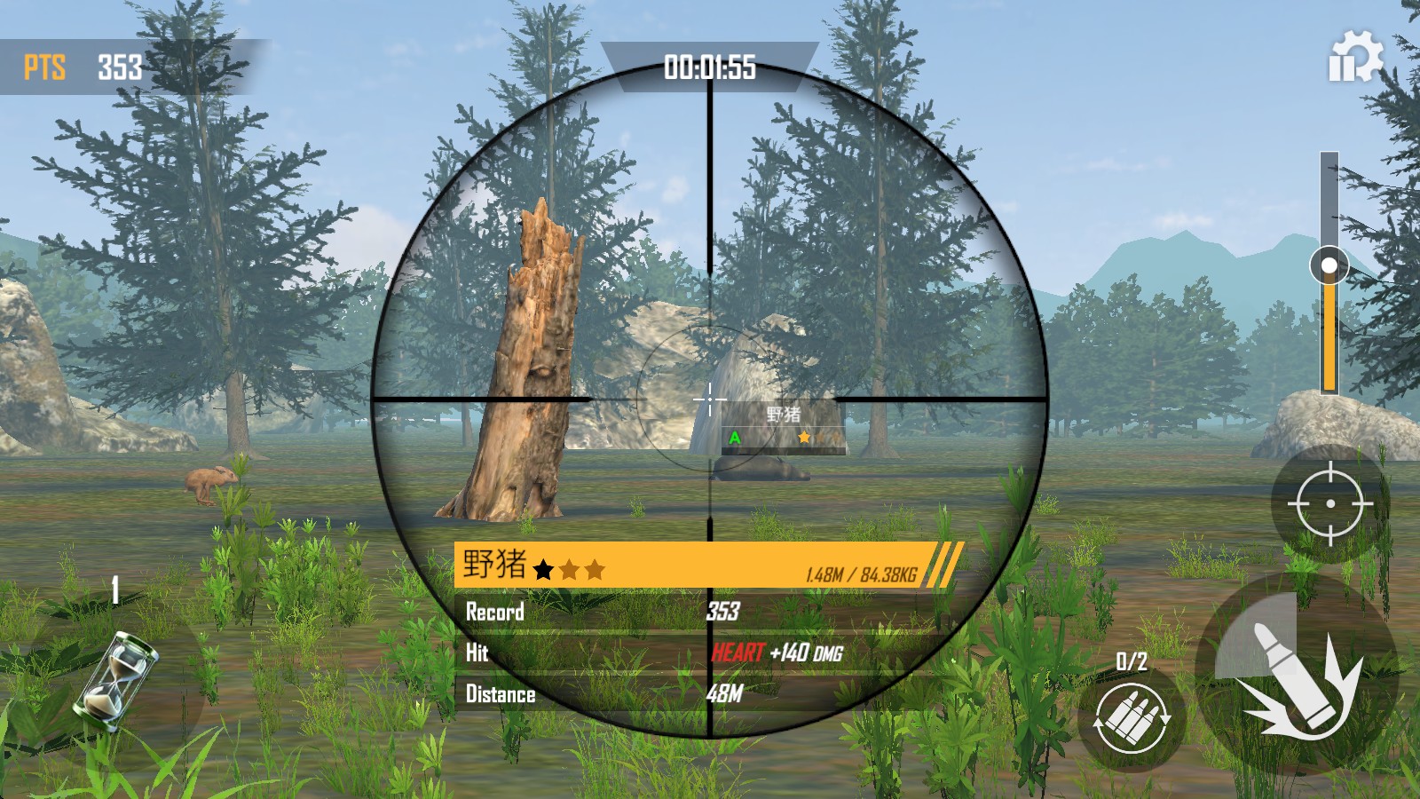 3、射击猎物关键要害部位可获得更高分数,考验玩家射击精准度,增加狩猎挑战性和成就感。
