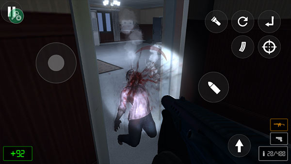 6、在下楼看到僵尸的时候,我们只需要使用枪械守住楼梯口即可;