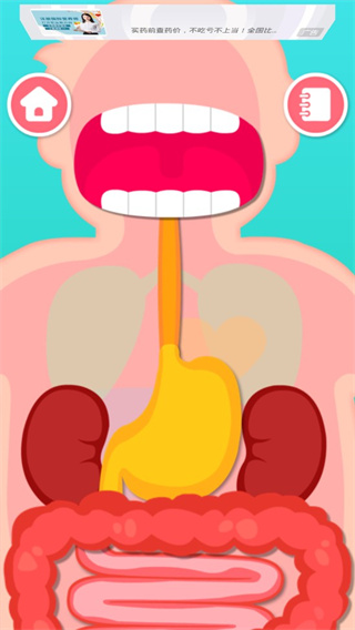 1、器官认知:真实模拟口腔、肠胃、肾脏等器官,轻松学习生理知识;