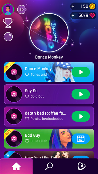 而撞击相同的球则会得分,该游戏中的音乐歌曲非常的丰富
