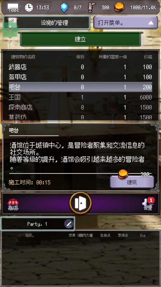 2、接着我们可以优先建造武器店,吧台和盔甲店