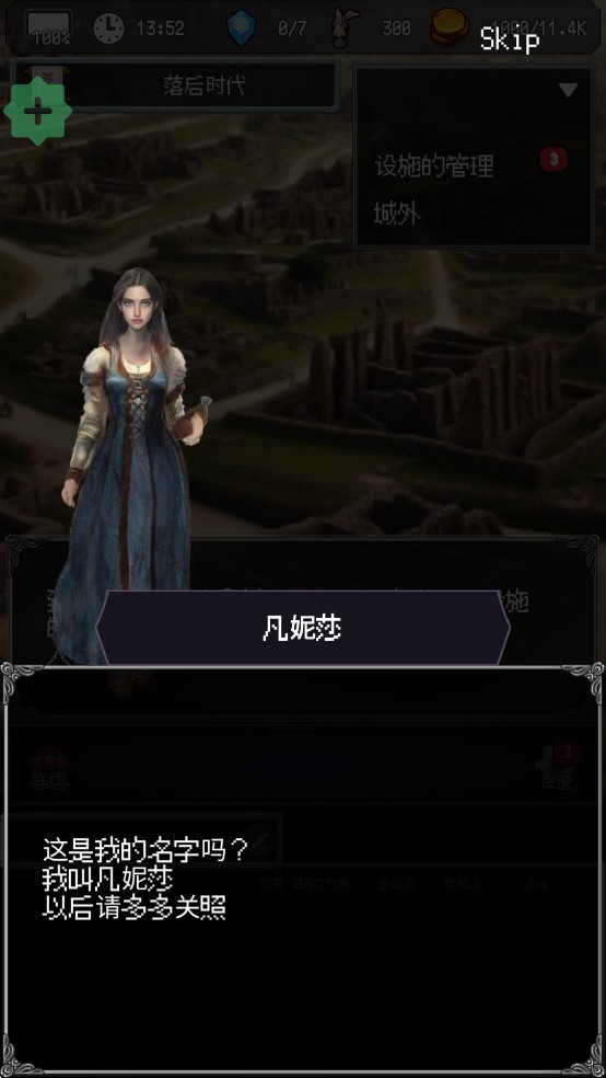 1、打开游戏首先会有npc为玩家讲解游戏玩法可以直接点击右上角的“skip”进行跳过