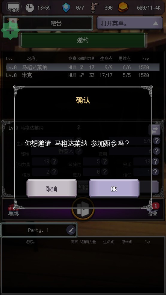 4、吧台可以招募邀约冒险者和我们一起冒险