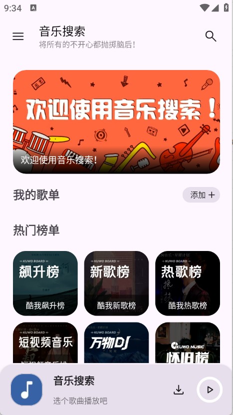 1、音乐搜索app带来了超多热门的音乐资源,不知道想听什么歌曲的用户可以搜寻喜欢的歌单随机播放。