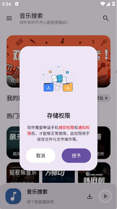 1、用户首先在本站下载安装音乐搜索app,并开启相关的权限。