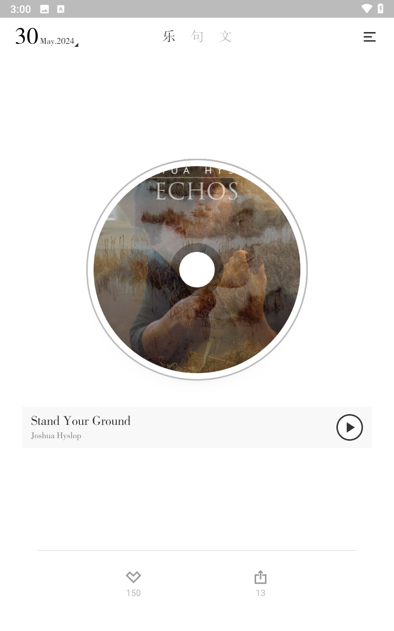3、 提供个人收藏与记录工具,支持对每日推送的任意内容(歌曲、句子、文章)进行收藏,并可添加私人感想,构建个人成长轨迹。