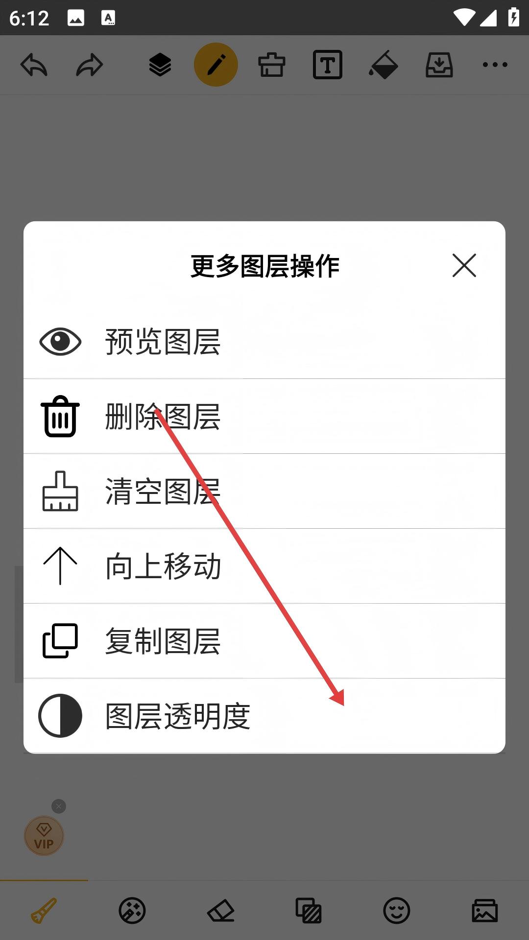 3、在更多图层操作菜单中,可选择图层透明度选项,通过该功能能调整图层的透明程度,让创作中的图层效果更符合预期。