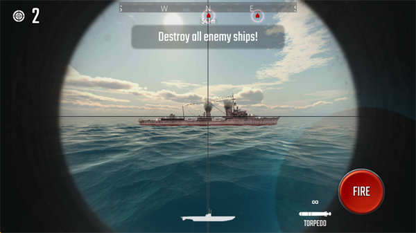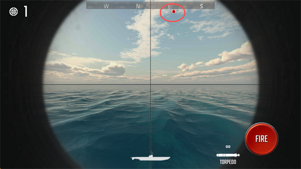 2、瞄准敌人的方向,预判敌人的行动轨迹,点击屏幕右下角的“FIRE”发射鱼雷。
