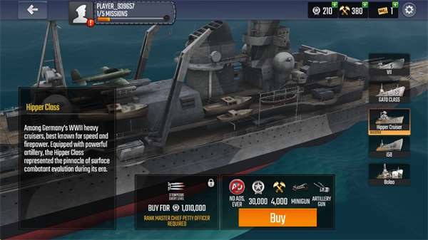 7、当经验值到达一定程度可以购买新的潜艇或者舰船,部分强力舰艇需要达到一定等级才可购买。