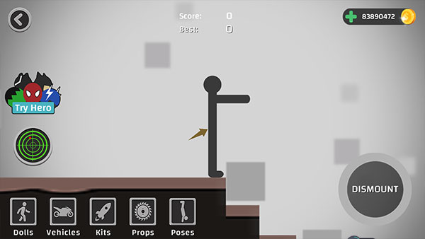 2、使用最好的道具和工具包替换火柴人并获得更多积分。