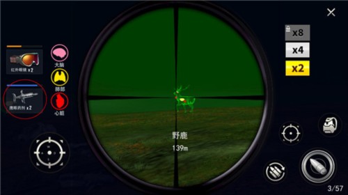 5、点击左上的红外眼镜可以准确的打击目标身体。
