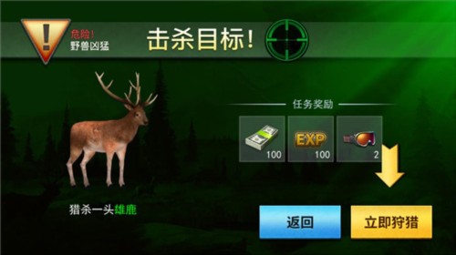 2、子弹数量有限,不要浪费。把狩猎结果拿到市场买弹药或者用钱解锁新的场景区域,那里的生物种类更多;