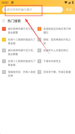 2、选择搜索栏,进入搜索界面,为寻找感兴趣的内容做好准备。