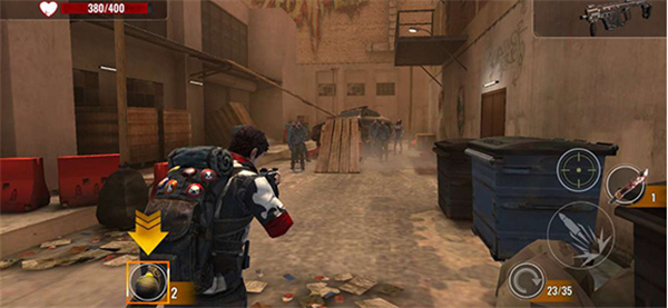 1、进入游戏经过故事情节,准备逃离来到这个地方,前面有僵尸需要打败他们才可以通关这里,如何操作呢?非常简单,在屏幕左边这个区域是负责移动靶心,将靶心对准僵尸。
