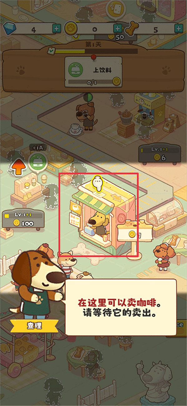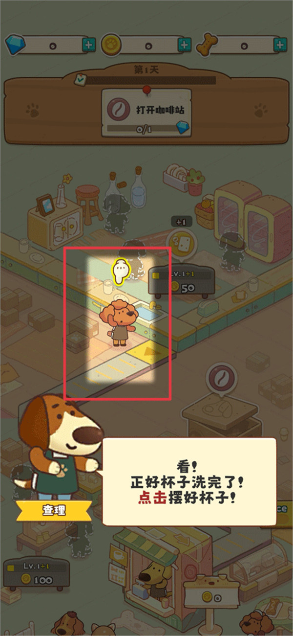 3、洗好的杯子会传送到咖啡馆,待负责做咖啡的小狗完成制作后,点击即可送出。
