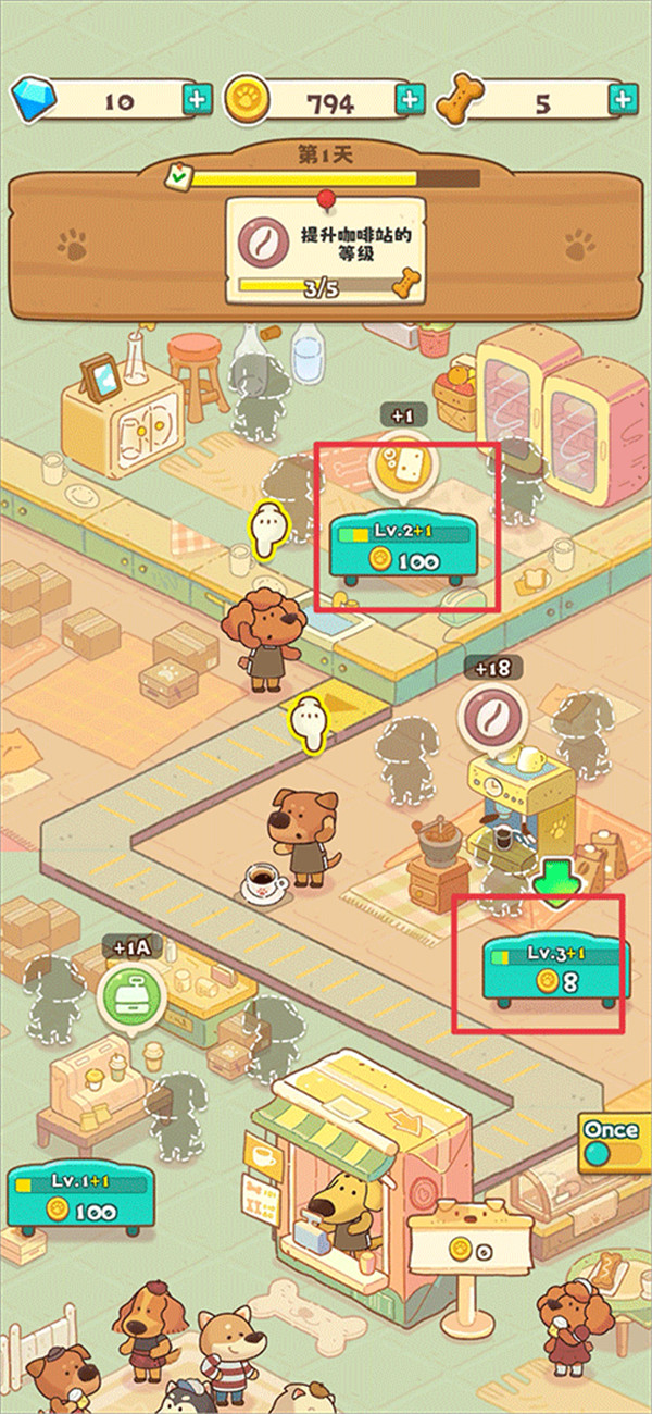 小狗咖啡馆手机版是一款模拟经营类型的游戏,在游戏中玩家可以招募各种狗狗来帮助玩家一起经营店铺,不断的提高我们咖啡的质量,获得客人的好评打响我们店铺的名气,吸引更多的客人到来吧。