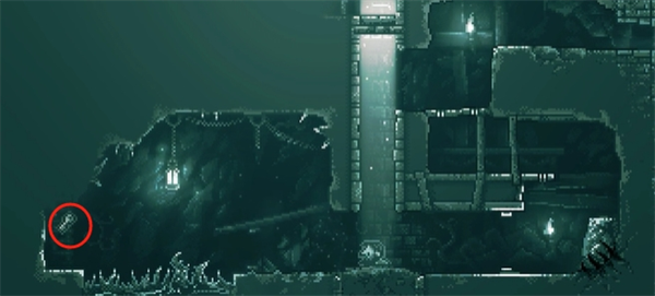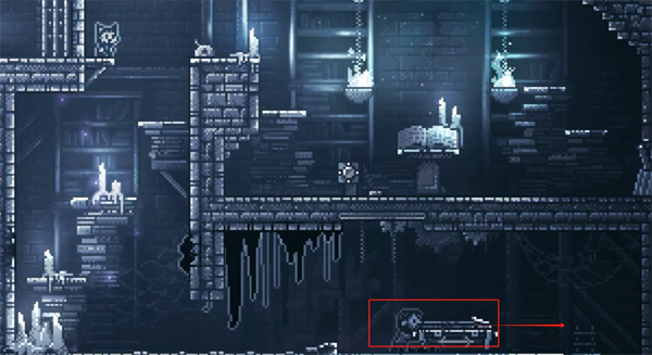4、往右走,砍断挡路的藤蔓,继续往右,进入城堡后往右下的火盆方向走下去。