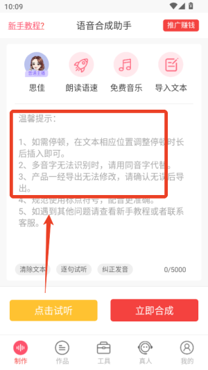 6、也可直接通过语音合成助手播放音频,文字与声音同步显示。