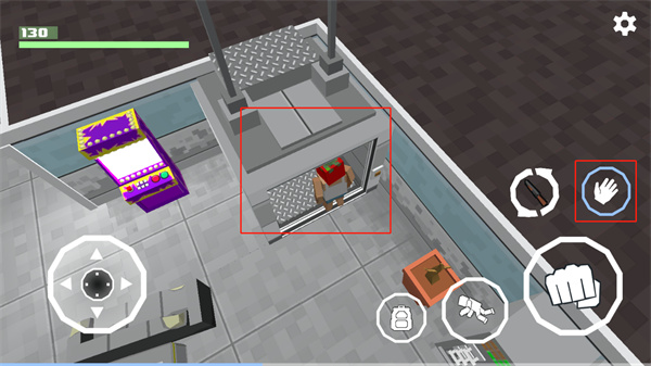 2、走到电梯里,再按住游戏右边的小手按钮来去到外面。