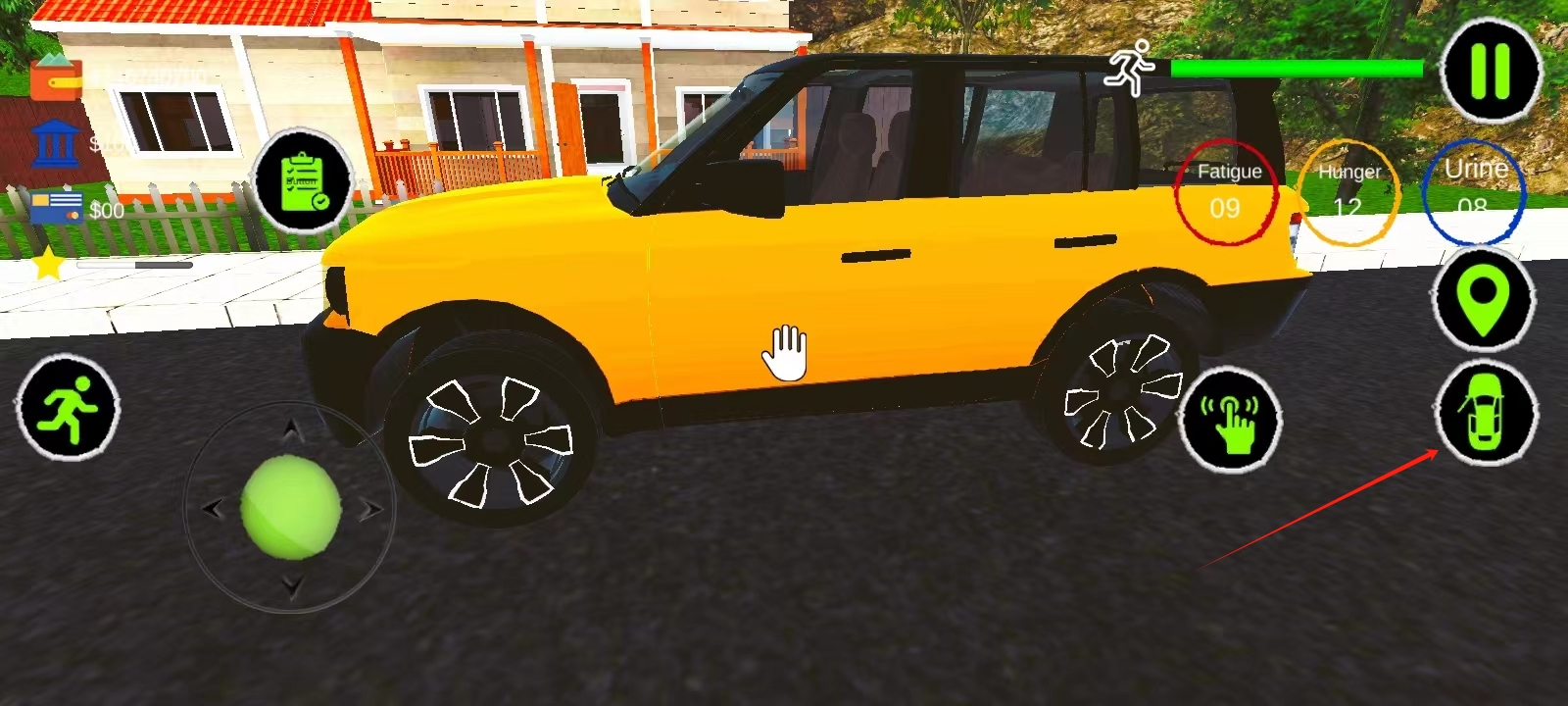 4、然后走到打开房门,走到自己车的旁边,点击下图的这个图标就可以驾驶;