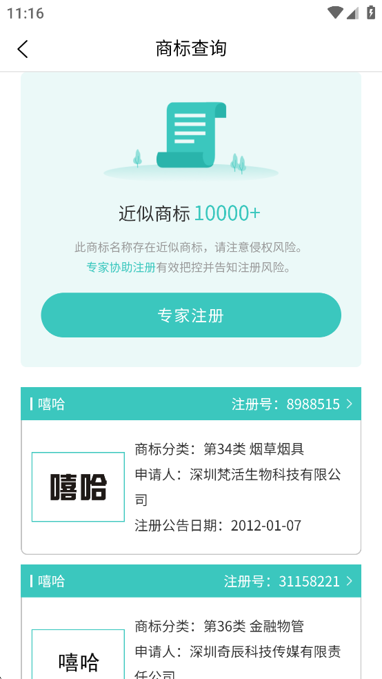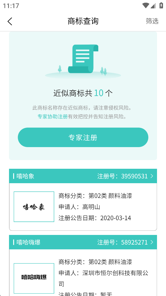 通过筛查近似商标,发出近似警告,提供商标注册风险评估报告,提高注册成功率;
