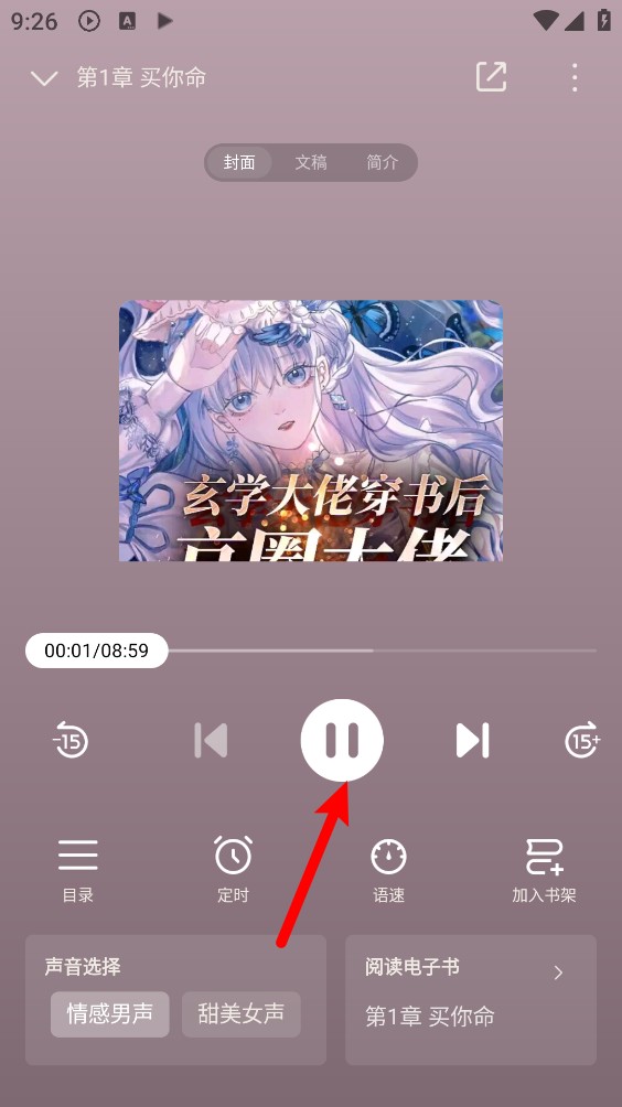 5、最后播放页面即可开启听书体验,支持定时、选择声音、倍数听书等功能