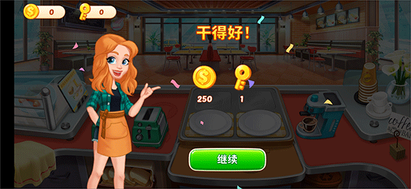 完成烹饪目标获得奖励,把餐车的厨具全部升级,还能重新装扮餐车。