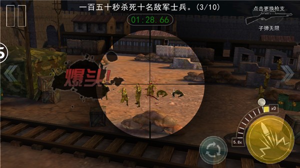 子弹时间非全屏慢放,仅聚焦于弹头飞行轨迹——你能看清弹尖旋转、空气扰动波纹,以及命中瞬间衣料撕裂与血雾迸溅的毫秒细节。