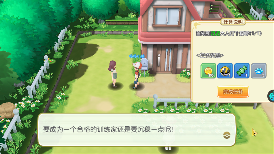 初次见面的小任务很简单:上前问候一声,对话完成即刻领取成长资源,开启你的训练师之路。