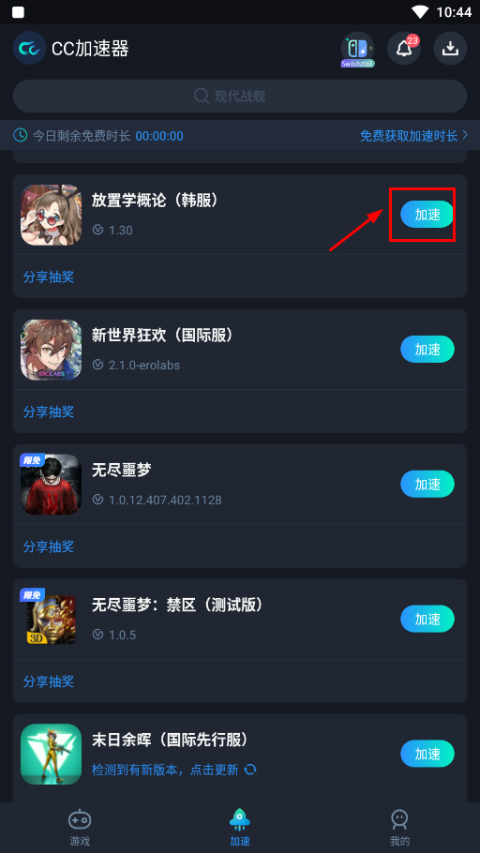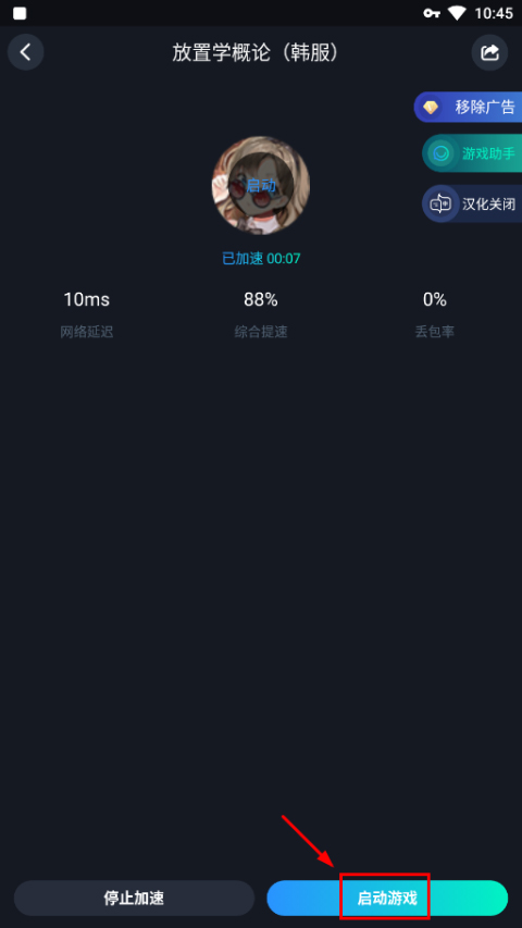 加速成功后,直接点击底部“启动游戏”按钮,即可进入主界面。