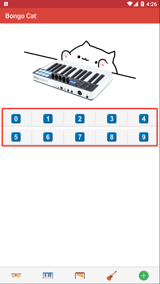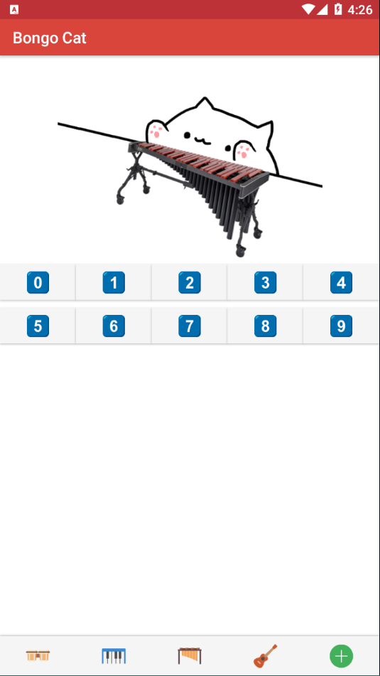 安装完成后,主界面会浮现一只静待指令的猫咪,背景随当前选中乐器自动切换色调。