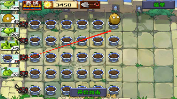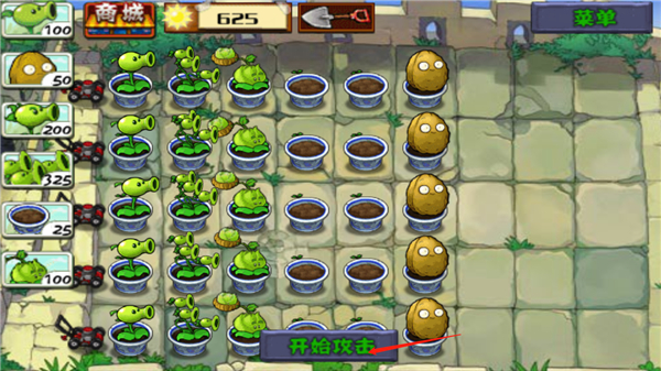 确认布阵完毕,点击“开始攻击”,城墙之下僵尸渐次逼近,战斗正式打响。